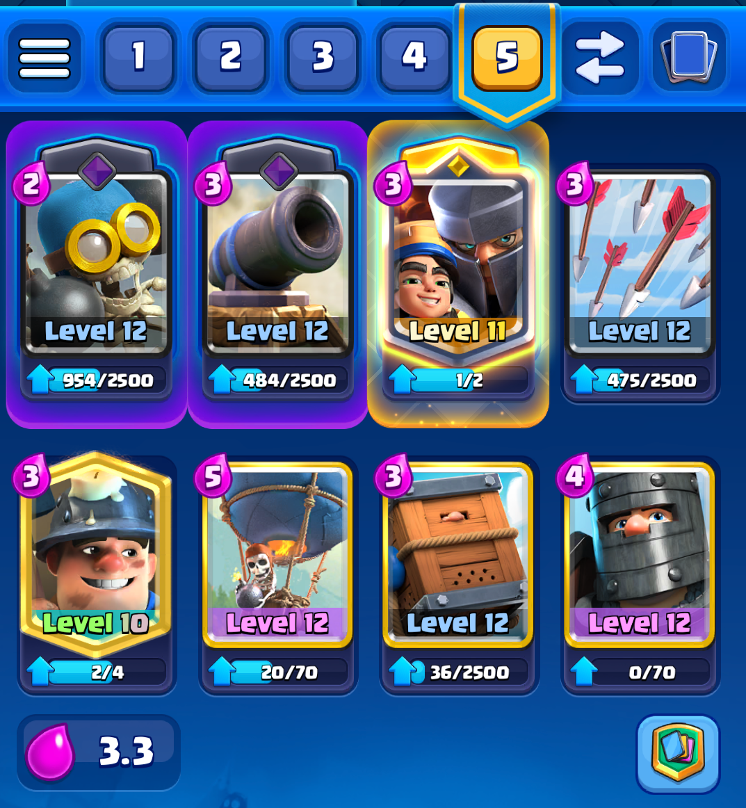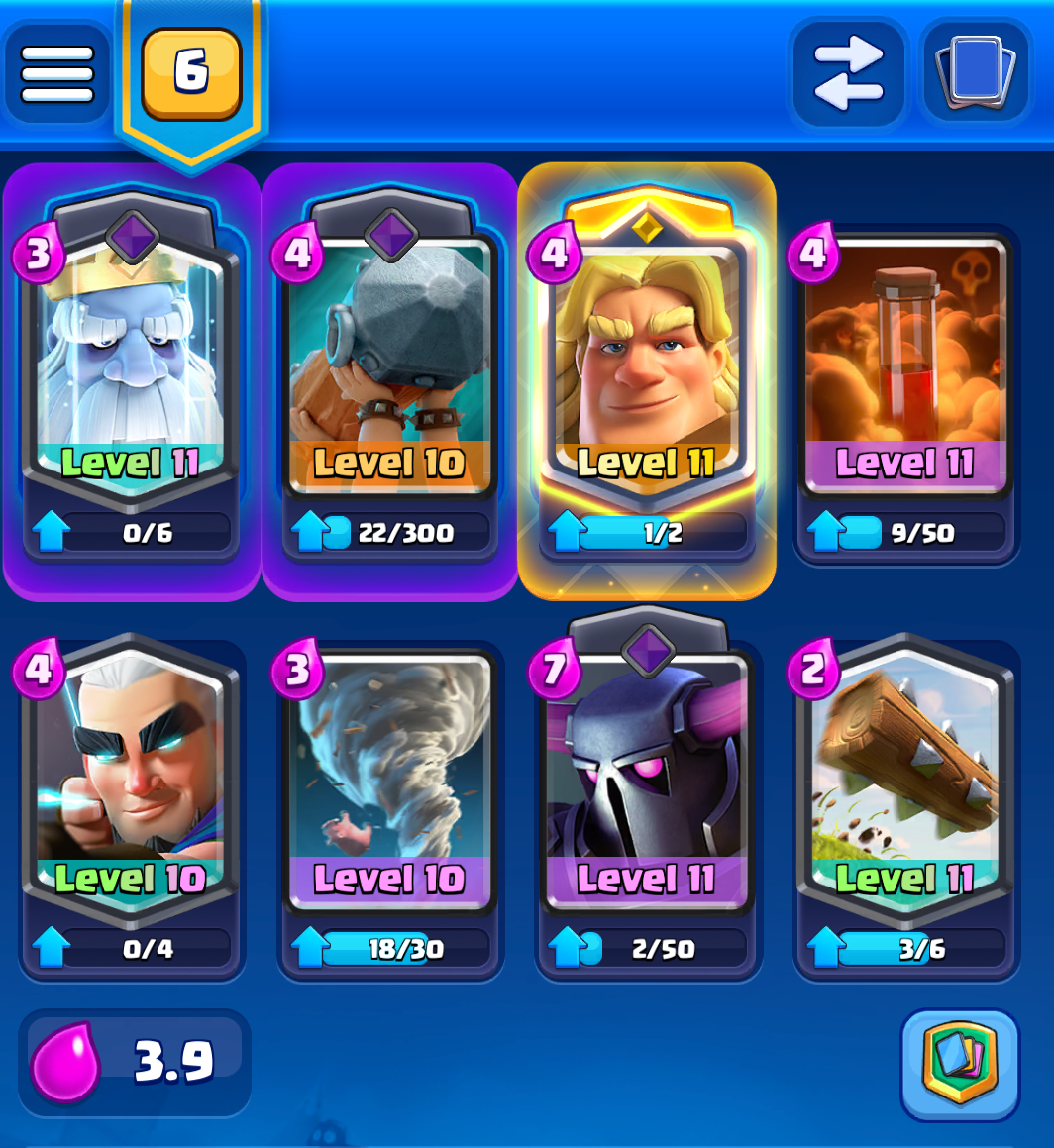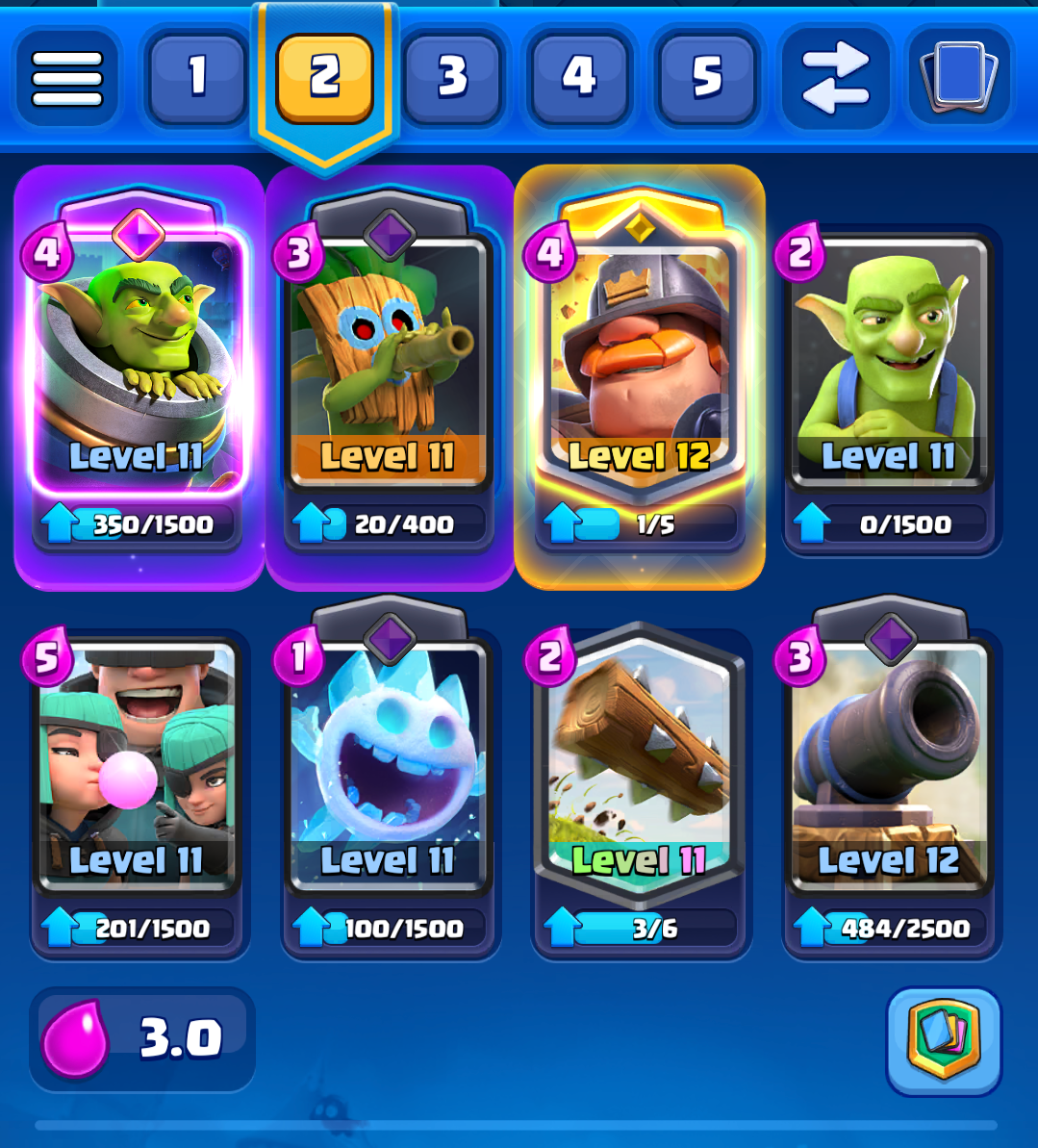 This last deck I don't play too much because I am just not good at playing it. Now you may it is a skill issue but considering that everyone I am going up against is way overlevelled and that this deck is shit at defense, it's not great.